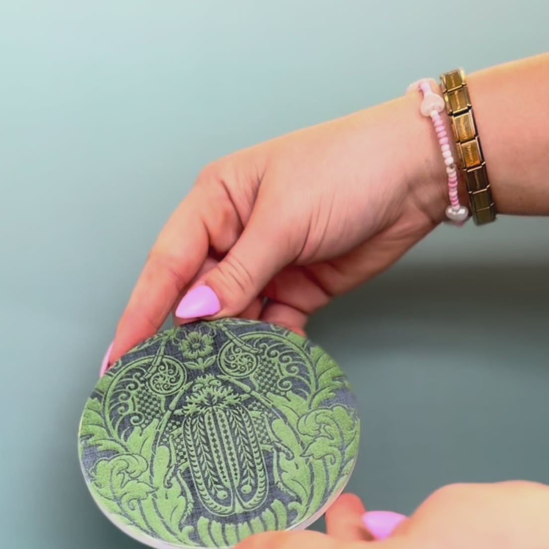 Please note: Tiny surface bumps or pinprick marks are a natural result of the heat-press and glazing process. These subtle variations are part of the handmade charm, giving each tile its own unique character.