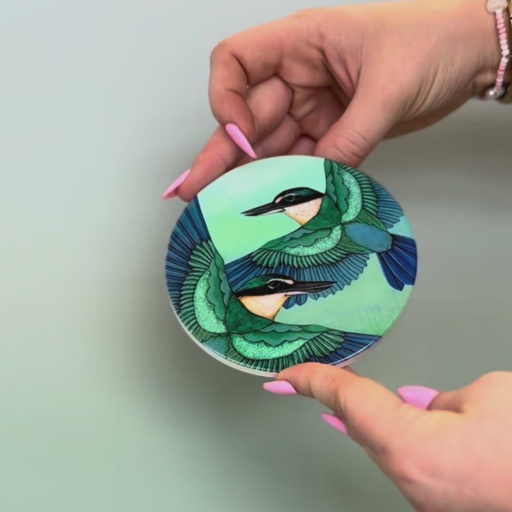 Featuring a pair of Kōtare the Sacred Kingfisher in flight.
